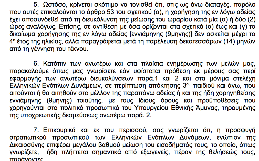 Άρχισε η χορήγηση τρίμηνης άδειας για τρίτο παιδί και στους στρατιωτικούς.